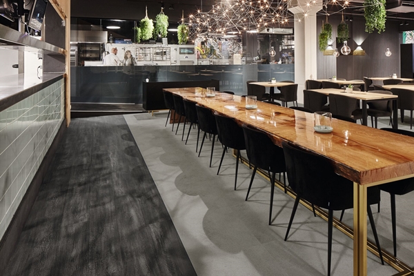De massief marmeren ontwerpen van Concrete onderscheiden zich van de klassieke Marmoleum vloeren