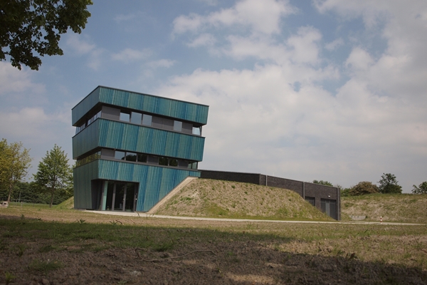 Raficlad gevelpanelen in diverse blauwtinten - Waterterp Vitens, Lelystad
