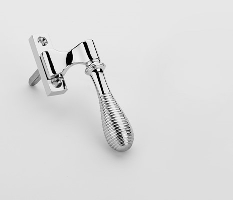 . De naam “Reeded” verwijst naar het geribbelde effect van de lijnen op kruk en rozet: meerdere lijnen naast elkaar vormen een