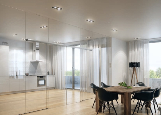 Een binnenschuifdeur is zeer ruimtebesparend, omdat je geen hinder ondervindt van de draaihoek van een deur en verschillende ruimtes van een woning worden verbonden met elkaar. Glazen schuifdeuren maken donkere ruimtes lichter en zorgen daarmee voor een extra ruimtelijk effect. Met de Levolan van GEZE brengt u licht, luxe, en een vleugje design en klasse in elke woning. Levolan is dé keuze van ontwerpers voor een glazen schuifdeursysteem binnenshuis.