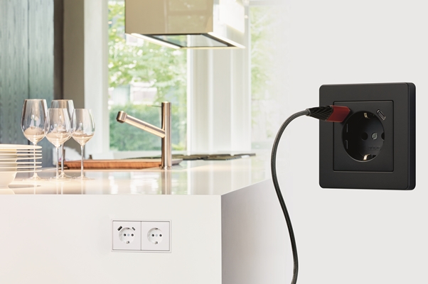 De JUNG contactdozen met beschermingscontact en USB-aansluitingen laden elke batterij snel weer op