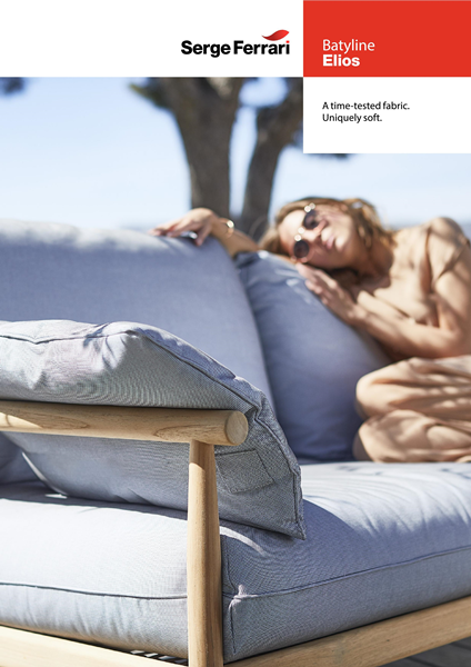 Serge Ferrari ontwikkelde Elios, een nieuw product in de Batyline familie, dat door gebruikers geprezen wordt om zijn unieke zachtheid. Met Batyline Elios maakt u van uw outdoor meubel een comfortabel toevluchtsoord.