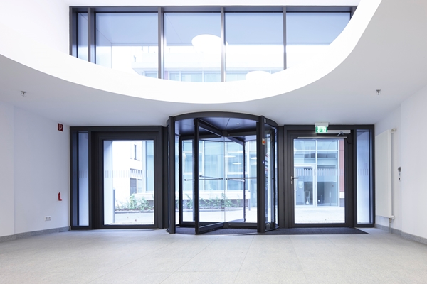 KTV carrouseldeuren van dormakaba combineren maximaal gebruikscomfort, veiligheid en vrijheid in designkeuze op volmaakte wijze. De deuren onderscheiden zich door excellente prestaties voor intensief doorgangsverkeer en brengen effectieve bescherming tegen tocht, kou en hitte.