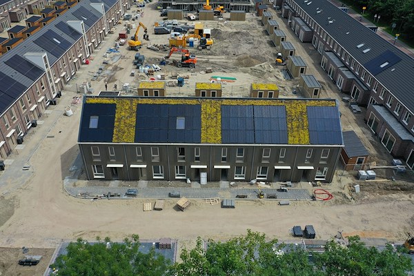 Groene woonwijk met Sedumdaken en zonnepanelen