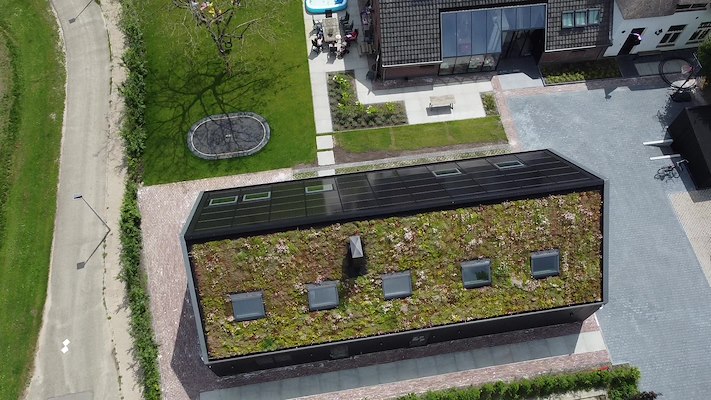 De toepassing van zonnepanelen op hellende daken van nieuwbouwprojecten is steeds vanzelfsprekender geworden en de vraag ernaar zal alleen maar stijgen. Gemeenten stellen ook steeds strengere eisen op het gebied van verduurzaming en klimaatbestendigheid. Daarom adviseren wij om naast zonnepanelen ook een groendak op uw projecten te laten plaatsen. In het geval van een hellend Sedumdak biedt Sempergreen een groendaksysteem aan dat zowel in combinatie met indak als opdak zonnepanelen kan worden aangelegd. Alle hellende daken tot 45 graden zijn geschikt voor deze toepassing.