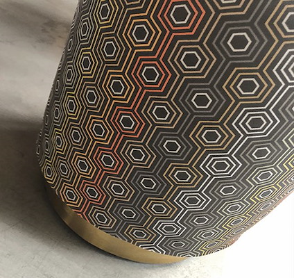 Deze verleidelijke collectie kunstleer is digitaal geprint en heeft de look van geweven textiel. Het dynamische geometrische reliëfpatroon in vier warme, sprankelende kleurschakeringen (rood-oranje, roze-paars, bruin-geel, groen-blauw) heeft onmiskenbaar de allure van de tijdloze en luxe art-decostijl. De collectie roept associaties op met de decadente roaring twenties waarin de wereldberoemde roman The Great Gatsby van F. Scott Fitzgerald zich afspeelt.