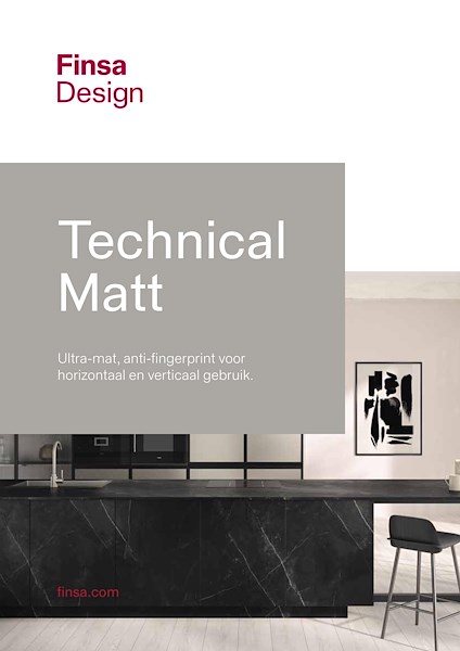Technical Matt by Finsa is ultra mat (glansgraad: GU. 2%) met anti-fingerprint oppervlak met fluweelzachte touch. Geschikt voor horizontaal of verticaal gebruik en geschikt voor contact met voedsel.