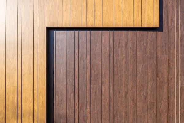 Rockpanel Beuken met verticale schijnvoeg. De platen zijn ongevoelig voor vocht
