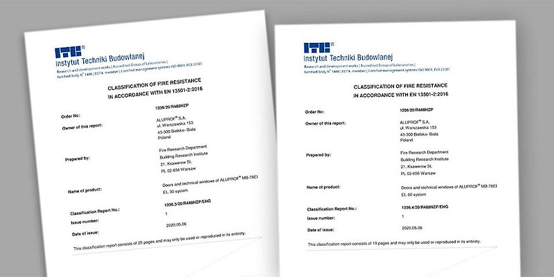 Verder wijzen we erop dat Aluprof SA in 2018 voor het systeem MB-78EI de certificaten ATG Benor heeft gekregen van het Belgische onderzoeksinstituut Butgb die recht geven op het in de handel brengen van brandwerende binnendeuren in de klassen EI130 en EI160 en markering van deze producten met de ATG Benor-markering. De CE- en ATG Benor-markeringen in de klasse EI1 maken dat Aluprof SA een breed scala aan brandwerende binnen- en buitendeuren en scheidingswanden van het systeem MB-78EI kan aanbieden.