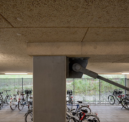 Afwerking Herafoam panelen in fietsenstalling Vakcollege Hillegersberg