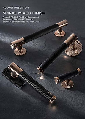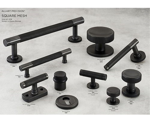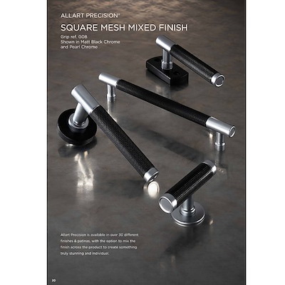 Allart Precison producten zijn leverbaar in meer dan 35 verschillende finishes en patinas. Met de mogelijkheid om dit te combineren met de verschillende producten. Alle grepen komen voor in 3 diameters en 8 modellen. Van de meubelgrepen kan ook de lengte worden aangepast. Daarnaast komen de rozetten ook voor in verschillende diktes en diameters. Dit samen met ruim 35 oppervlaktebehandelingen zorgt er voor dat elk project uniek is. Voor meer informatie of een rondleiding door de showroom kunt u contact met ons opnemen of op de site kijken: frankallart.com