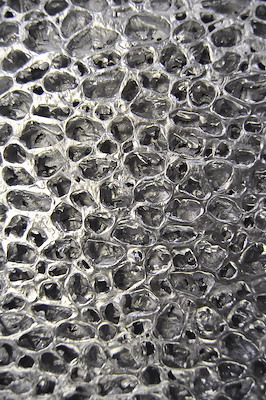 MD Alusion™ gevelpanelen van architecturaal gestabiliseerd aluminiumschuim wordt geproduceerd door lucht in gesmolten aluminium te injecteren, dat een fijne dispersie van keramische deeltjes bevat. Deze deeltjes stabiliseren de bellen die door de lucht worden gevormd, net zoals droog cacaopoeder de bellen stabiliseert wanneer het aan melk wordt toegevoegd. Je hebt daarbij de keuze uit panelen met grote cellen, middelgrote cellen en kleine cellen.