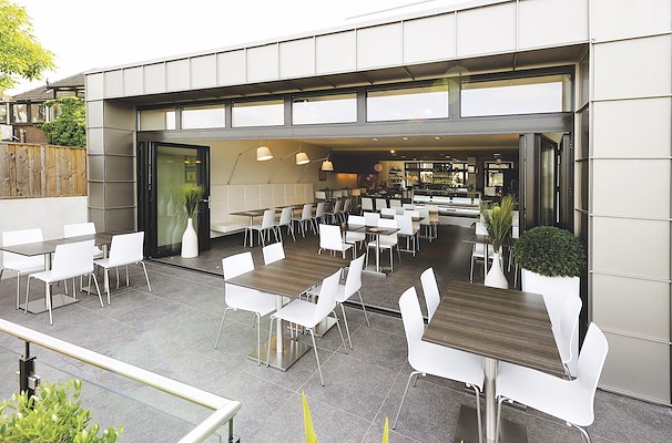 " : zij plaatsen een Panorama vouwwand in hun restaurant. Op zomerse dagen kan je de wand volledig openvouwen en vormen binnen en buiten één mooi geheel.