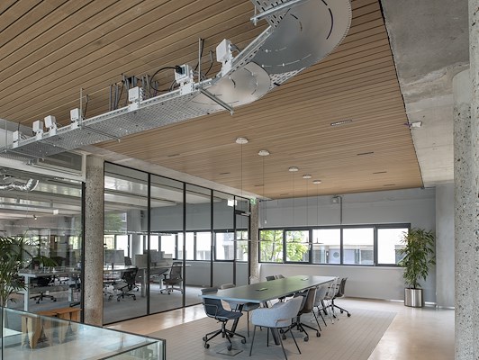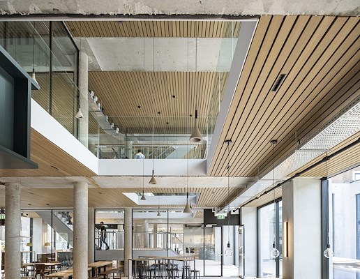 Hunter Douglas Architectural voorziet een Amsterdams kantoor van het Derako® Lineair plafondsysteem in houtfineer.