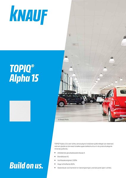 De vernieuwde TOPIQ®, heet TOPIQ® Alpha. De term Alpha staat voor uitstekende geluidsabsorptie in combinatie met het meest vlakke oppervlakuiterlijk in deze productcategorie.