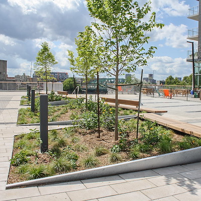 modulair systeem dat looproosters, zitelementen en (gecombineerde) plantvakken omvat