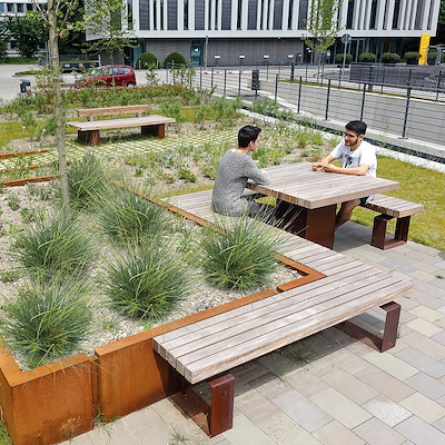 modulair systeem dat looproosters, zitelementen en (gecombineerde) plantvakken omvat
