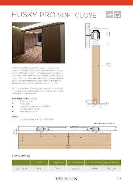 Het softclose systeem van Henderson is er in twee varianten en uitermate geschikt om binnendeuren tot 120 kg op een subtiele manier te laten sluiten.