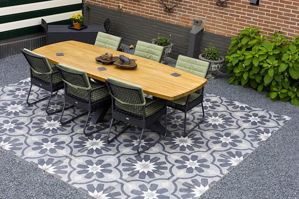 Keramiek en beton in één tegel. De absolute top in tuintegels en zwembadranden.