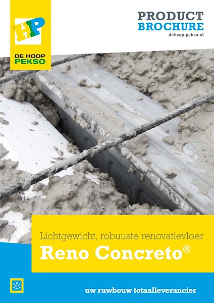 De Reno Concreto® is de renovatievloer met een comfortabele, robuuste woonbeleving. Deze arbovriendelijke vloer heeft stalen liggers, vulelementen van geëxpandeerd polystyreen (EPS) en wordt afgewerkt met een betonnen druklaag en een cementgebonden afwerklaag. De speciaal gecoate stalen liggers en de in het werk gestorte druklaag leveren samen de constructieve sterkte en robuustheid van deze vloer. Reno Concreto® is voor renovatie en nieuwbouw (bijvoorbeeld een uitbouw) geschikt en wordt voornamelijk toegepast in: