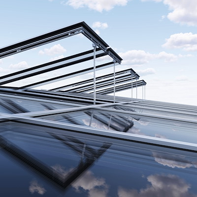 Opzetconstructie op staal voor vliesgevels of lichtdaken met uitstekende prestatie-eigenschappen