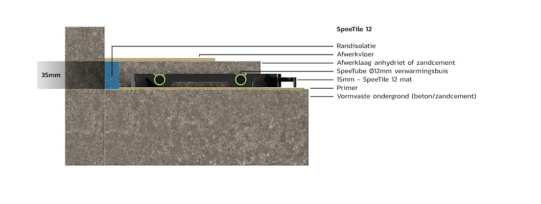 SpeeTile12 is zeer geschikt in situaties waar meer opbouwhoogte beschikbaar is (vanaf 35mm). Deze variant kan worden afgewerkt met zandcement of anhydriet en wordt onder andere veel gebruikt in grotere ruimtes, zoals bedrijfshallen.