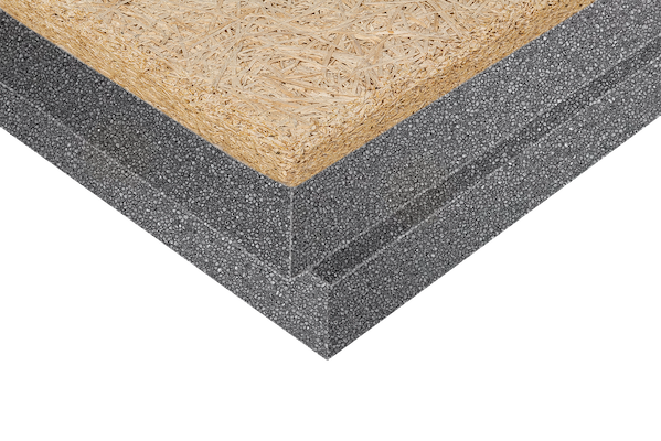 is opgebouwd uit een akoestische houtwolcementplaat met een volledig verlijmde grijze EPS isolatie. De grijze EPS PLUS isolatie heeft een