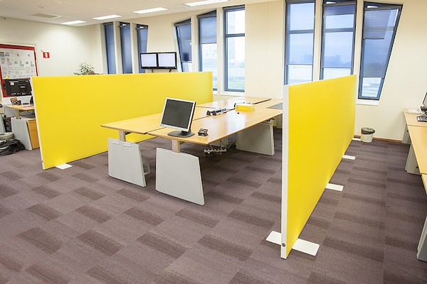 Door het plaatsen van een ‘scheidingswand’ op voetjes die vervolgens op het bureau wordt gemonteerd, creëeren wij eenvoudig een bureauscherm.