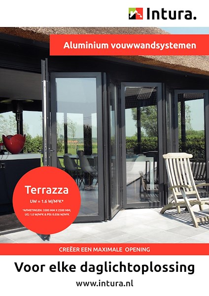 Intura Terrazza aluminium vouwwanden zijn op vele plaatsen toe te passen. Creëer een maximale opening bij jouw tuinkamer, serre, terras of zwembad. Uiteraard is het ook mogelijk om een vouwwand toe te passen in een zakelijke omgeving of horeca gelegenheid.