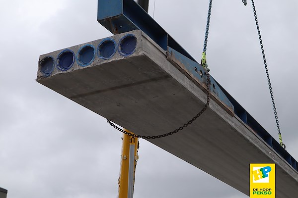 De vloerelementen zijn in de lengterichting voorzien van ronde holle kanalen waardoor deze vloer een relatief laag eigen gewicht heeft.
