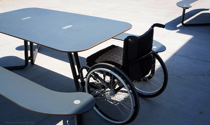 Aan de Plateau-I Picknicktafel kunnen 2 rolstoelen aanschuivenonen