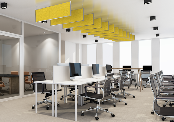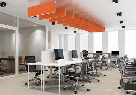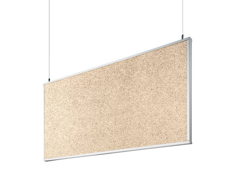is een akoestische rechthoekige baffle samengesteld uit een Organic Twin houtwolcementpaneel met een aluminium kader als randafwerking. In hoge ruimtes kunnen de baffles geplaatst worden met vaste hart-op-hartafstanden en op verschillende hoogten voor een effectieve akoestische verbetering. Klinkt goed, toch?