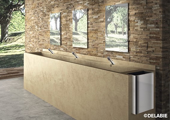 DELABIE biedt een noviteit aan met zijn TEMPOMIX 3 ééngreepsmengkraan muurmodel. Deze muurmengkraan kan geïnstalleerd worden zonder afdekplaat en inbouwkast. Er zijn verschillende, en bovendien meer esthetische, installatieconfiguraties mogelijk: tussen volle muur en gipsplaat, tussen een holle wand van gipsplaat of in een volle muur (slechts één sleuf nodig). Ook het onderhoud wordt vereenvoudigd dankzij de directe toegang tot het binnenwerk langs de voorkant.
