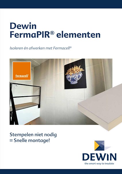 Fermacell BV, met veel kennis over droge afbouw, en Dewin, producent van geïsoleerde bouwplaten, zijn partners voor FermaPIR®. De toplaag van Fermacell® is een robuuste afwerking die een prima aanzicht voor publieke ruimtes biedt maar die, indien gewenst, ook gemakkelijk behangen, geschilderd, gepleisterd of betegeld kan worden. Hiervoor kunnen de methodes worden gebruikt zoals gebruikelijk voor fermacell® platen. Montage met een High Tack Montagekit maakt snelle montage mogelijk zonder stempelen!