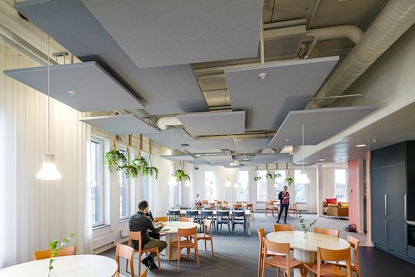 Een verlaagd systeemplafond is een ideale manier om de akoestiek in een ruimte te optimaliseren, maar in de praktijk niet geschikt voor elke situatie. Het kan zijn dat u als architect het industriële karakter van een gebouw in stand wilt houden door het ruwe plafond zichtbaar te laten.