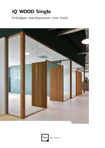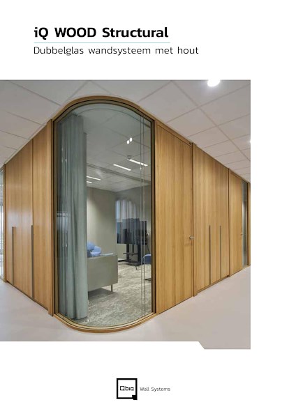 De QbiQ iQ WOOD systeemwanden en deuren zijn ontwikkeld met aandacht voor zowel prestatie als uitstraling. De iQ WOOD is opgebouwd uit een combinatie van aluminium en houten profielen. Door in de kern te werken met aluminium profielen behoudt het systeem de kracht van een flexibele systeemwand. Dankzij de unieke materiaalcombinatie is het mogelijk een minimalistische, houten systeemwand te creëren met een consistente profielhoogte van slechts 33mm. De systeemwanden voldoen aan hoge geluidswerende eisen, zodat concentratie- en overlegruimtes optimaal functioneren. Dankzij de modulaire opbouw zijn ze eenvoudig te (de)monteren, te verplaatsen of aan te passen aan veranderende ruimtelijke behoeften — een eigenschap die perfect aansluit bij circulair en toekomstbestendig bouwen. Tevens is de kern van de iQ WOOD Cradle to Cradle Silver gecertificeerd en wordt er enkel gebruik gemaakt van FSC® (C170369) gecertificeerd hout. De iQ WOOD bestaat zowel in een enkel- als dubbelglas uitvoering met wanddiktes van respectievelijk 40mm en 98mm.