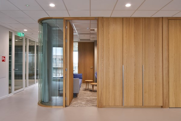 verdieping Acerta Pharma is gehuisvest. Het ontwerp van CBRE reflecteert openheid en een natuurlijke uitstraling. In dit project zijn meerdere afgesloten kantoor- en overlegruimtes gerealiseerd door het gebruik van de iQ WOOD Structural. Door het gebruik van deze dubbelglas oplossingen, is niet alleen de akoestiek optimaal beheert, maar is er ook een warme, natuurlijke werkomgeving in het farmaceutische kantoor.