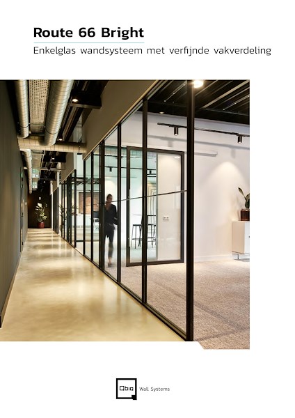 Met de slanke profielen herleeft de industriële uitstraling van de jaren dertig van de vorige eeuw. Door toepassing van moderne techniek bij het plaatsen van de aluminium profielen en inzetten van akoestisch gelaagd glas, heeft deze glazen systeemwand uitstekende geluidseigenschappen. Route 66 Bright is daarom uitermate geschikt voor het partitioneren van ruimtes. De aluminium kaderdeuren met gelaagd glas worden natuurlijk ook voorzien van een gelijksoortige vakverdeling. Met een profiel hoogte van slechts 33 mm is ook deze glaswand mooi te combineren met andere wandsystemen en deurtypes uit de iQ LIBERTY-serie.