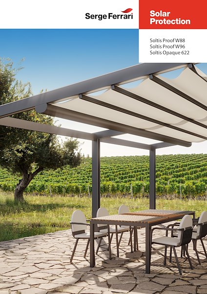 Soltis Proof W88 is het ideale doek voor pergola of vrijstaande zonwering. Het combineert waterdichtheid met een dun en lichtgewicht ontwerp om het rollen te vergemakkelijken.