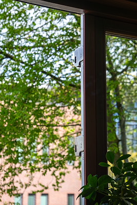 Voor optimale veiligheid gebruikt u per raam of deur een set van twee kierstandhouders. Schuif de pen in de sluitkom van het kozijn en sluit het raam/deur zoals gebruikelijks. Zo blijft het raam of de deur stevig op kierstand vergrendeld, waardoor frisse lucht vrij kan circuleren. Wanneer het raam of de deur volledig gesloten moet worden, kun je de sluitplaten eenvoudig uitnemen.