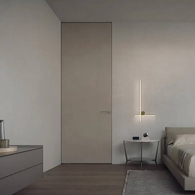 Rimadesio Radius enkele taatsdeuren geïntegreerd met Modulor wandpanelen