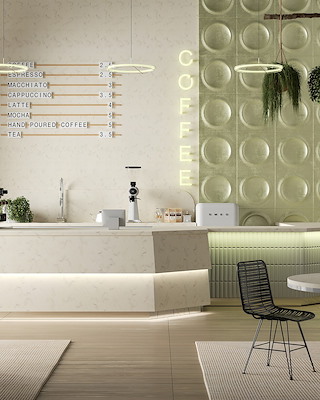 , van solide kleuren tot prachtige marmer- en natuursteendecoren. Aanvullend op de decoren heeft het merk
