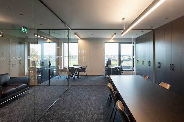 Prismatische diffusor die een heldere, diffuse optiek combineert met een lage verblindingsgraad (UGR = 19), geschikt voor