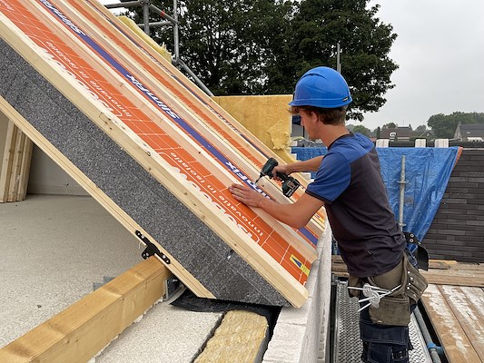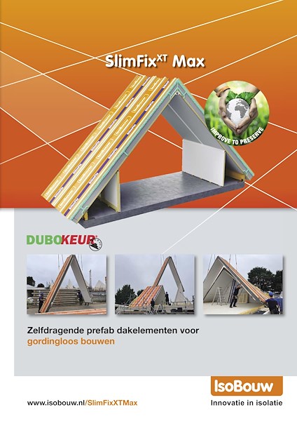 Max dakisolatie combineert de flexibiliteit op de bouwplaats en de korte levertijd van dakelementen met het gemak van een traditioneel prefab daksegment. Dankzij de dragende constructieve tengels in combinatie met de scharnierverbinding is SlimFix