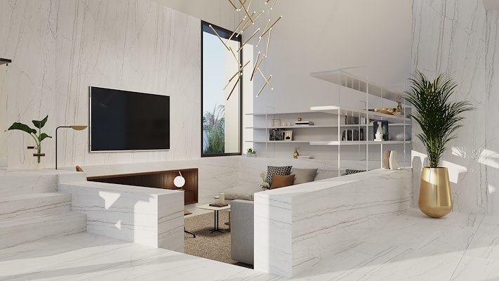 combineert elegantie en structuur. Een kalme sensatie brengt een gevoel van welzijn in de ruimte. Met fijne, bleke aderen die het gemarmerde patroon kruisen. Vooral geschikt voor lichte, neutrale ruimtes met zachte texturen, lichte kleuren en houten of metalen accenten.