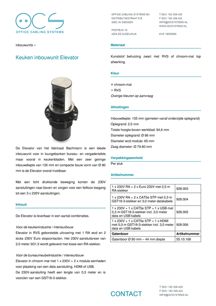 De absolute trendkleur van het moment is zwart. Daarom zijn de inbouwunits Bachmann KAPSA en ELEVATOR standaard leverbaar in een compleet zwarte uitvoering; Pure Black. De PIX en TWIST serie waren al leverbaar in het zwart. Ook andere uitvoeringen zijn mogelijk, zoals aluminium of wit. Bij KAPSA en PIX kunnen zelfs de deksels en kleurringen makkelijk worden verwisseld voor andere kleuren. De PIX is ook leverbaar in een Pure White editie, zelfs het stopcontact is wit. Opvallend onopvallend. Dat brengt variatie in de Nederlandse keuken! Alle inbouwunits zijn gemaakt van duurzame materialen, zoals aluminium en hoogwaardige kunststoffen.