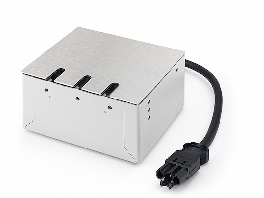 De vloerdoos beschikt over een drietal modules voor stroom en data. De standaarduitvoering is voorzien van 2 randaarde contactdozen van het type 45 x 45 mm. De 230V van deze holle ruimte vloerdoos wordt volledig voorbereid geleverd. Aan de achterzijde is via een pg-wartel een voedingsleiding aangesloten. De lengte is 0,5 meter – H07RN-F 3G2,5 en voorzien van een Gst o.g. of een Wago/Winsta 3-polige male connector. De derde module is een lege positie, hier kan geheel naar keuze data of multimedia in worden afgemonteerd.