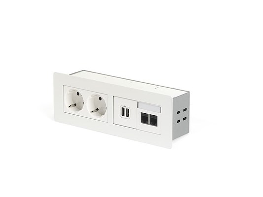Inbouwunit OCS EVIA wit - 2x 230V + 1x 2v USB charger en 2x data