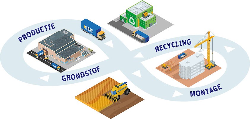 FAAY Vianen is de eerste wandproducent ter wereld met een terugnamegarantie voor de circulaire (vlas)kern wand. De gipsbeplating en vlaskern worden bij terugname gescheiden waarbij de gipsplaat wordt hergebruikt voor onder andere nieuwe gipsplaten. Het vrijkomende vlas wordt verpulvert en hergebruikt om er spaanplaat van te laten maken. Op lange termijn wil Faay het ingezamelde vlas zelf gaan hergebruiken voor nieuwe vlaswanden.