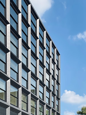 Methermo®XL ramen dragen bij aan de vereiste daglichttoetreding bij het transformeren van een kantoorgebouw tot woning. De Methermo®XL verticaal schuivende ramen bestaan uit twee glaspanelen, waarvan het bovenste deel naar onderschuift. In gesloten stand is het gevelbeeld uitgerust met minimalistisch profielgebruik en maximale glasoppervlakten, waardoor de daglichttoetreding optimaal is.